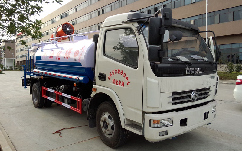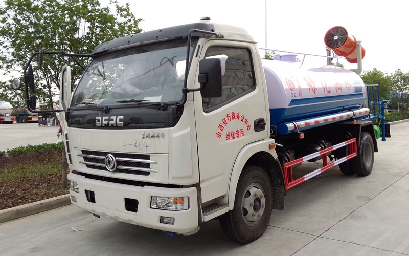 整車具有前沖、后灑、側(cè)噴、后置式工作平臺(帶踏梯,四周有安全護(hù)欄)、平臺上設(shè)置有高壓水炮(可360°全方位旋轉(zhuǎn),可連續(xù)噴射出:直沖狀、開花狀、雨狀、半霧狀等水流形態(tài)。柱狀水流射程28米,半霧狀射程14米)。平臺上安裝帶獨立動力的炮筒式風(fēng)送噴霧打藥機組。該車灑水寬度大于14米,配備優(yōu)質(zhì)大功率專用灑水泵、取力器、雜物過濾網(wǎng)、國標(biāo)通用65型消防接口(可通過消防栓加水)、1套自流球閥系統(tǒng)(可自吸自排,大吸程6米)、2根引水鋼絲膠管(帶陰陽快速接頭)、配鎖、水位計、高音作業(yè)喇叭,兩側(cè)及后加強型保險杠,防滑爬梯,膠管儲存筒。